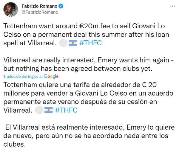 A lo largo de las últimas horas, el periodista especializado en mercado de pases, Fabrizio Romano, explicó en su cuenta de Twitter que los directivos del Submarino Amarillo dialogaron con el entrenador, Unai Emery, y llegaron a un acuerdo para llevar a cabo la negociación con los ingleses por Lo Celso.