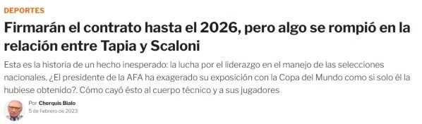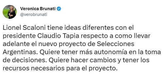 De todas formas, pese a los momentos de rigidez entre ambos conductores del campeón del mundo, la renovación será una realidad. La periodista Verónica Brunati agrega que existen diferencias entre los planes de Scaloni y los de Tapia dentro del proyecto del seleccionado. Es por eso que las reuniones próximas tendrán vital importancia para conocer el futuro de Argentina.