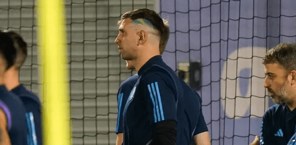 Como es costumbre de los jugadores de la Selección, que al igual que en la Copa América de Brasil 2021 llevaron un peluquero a la concentración, el Dibu Martínez se cortó el pelo, y sorprendió a todos con su nuevo look, demostrandotodo su sentimiento e ilusión con los colores albicelestes.