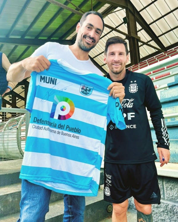 “Estaba tranquilo, fue en un momento en el que estaba con el entrenador del Athletic, así que pudimos cruzar unas palabras. El se notaba cómodo, me preguntó de mi vida, hace cuánto estaba acá. Para mí es un recuerdo imborrable”, dice Fusto, quien también tuvo unos minutos para conversar con el entrenador Lionel Scaloni.