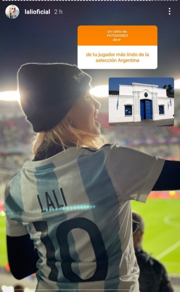 “Un ratito de foto/video de”, propuso Lali a través de las historias y abrió la caja de comentarios. “Tu jugador más lindo de la Selección Argentina”, le pidió una seguidora y ella respondió con la imagen de la casita de Tucumán.