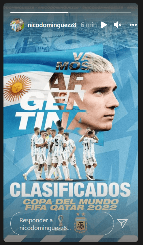 En sus cuentas de Instagram, tanto Lautaro Martínez y Nicolás Domínguez compartieron una foto donde celebraron la obtención del pasaje hacia el Mundial, donde los dirigidos por Scaloni buscarán obtener el certamen en lo que serán 36 años del último título mundialista en México 1986.