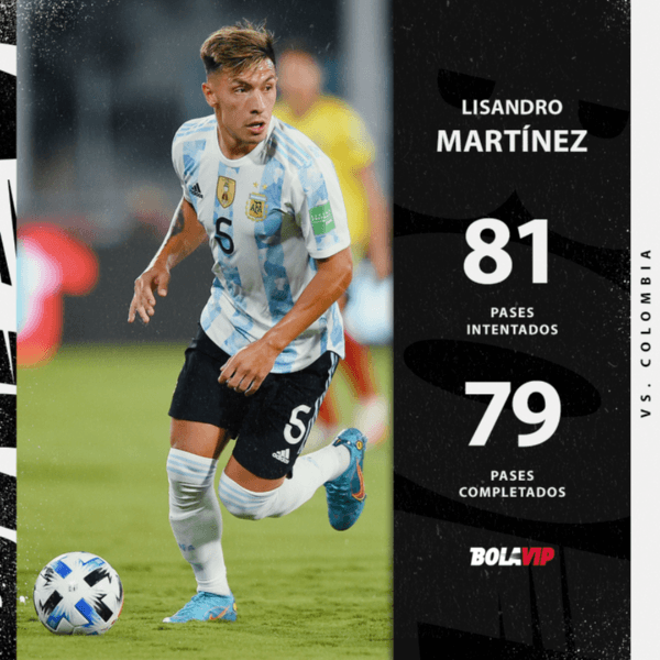 Para dimensionar su encuentro ante Colombia, Martínez fue el jugador que más pases completó en el partido. Precisamente, acertó 79de los 81que intentó, de los cuáles 21fueron a campo rival. Asimismo, el gol vino de una habilitación suya a Marcos Acuña, que luego le envió el centro a Lautaro. Cuánta jerarquía tiene la Selección…