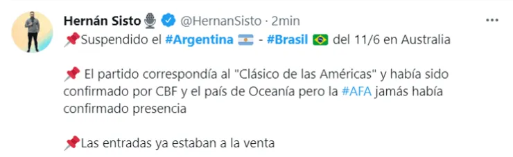 Con el Mundial de Qatar en el horizonte, el gran objetivo de Argentina y Brasil es llegar de la mejor manera. Por eso, ambas selecciones habían organizado un amistoso en Australia para continuar con la preparación. Ahora, confirmado por la Conmebol que se disputará el match correspondiente a las Eliminatorias, ambos países decidieron suspender el duelo.