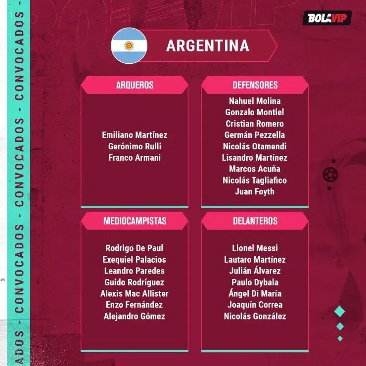 Una lista con muchos jugadores jóvenes, los cuales seguramente repita en EEUU – México – Canadá 2026, los cuales marcan un cambio generacional ya que se da la particularidad de que ninguno de los jugadores que estarán en Qatar vio a la Selección ganar la Copa del Mundo 1986.