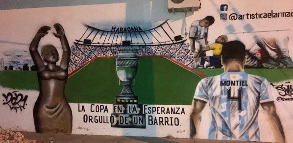 Justamente en el lugar donde nació, le hicieron un homenaje que seguramente lo deje sin palabras. Fue Mauro Gauto el artista que hizo un mural espectacular: lo pintó a él de espaldas, con el Maracaná de fondo y el tan amado trofeo en primera plana.