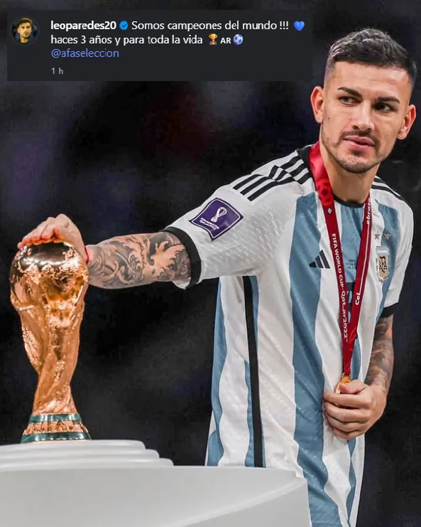 En su tercer aniversario, el equipo de Lionel Scaloni ya piensa en el Mundial 2026. Sin embargo, muchos de los 26 campeones se tomaron un minuto para rememorar la conquista en Lusail con diferentes posteos en sus redes sociales.