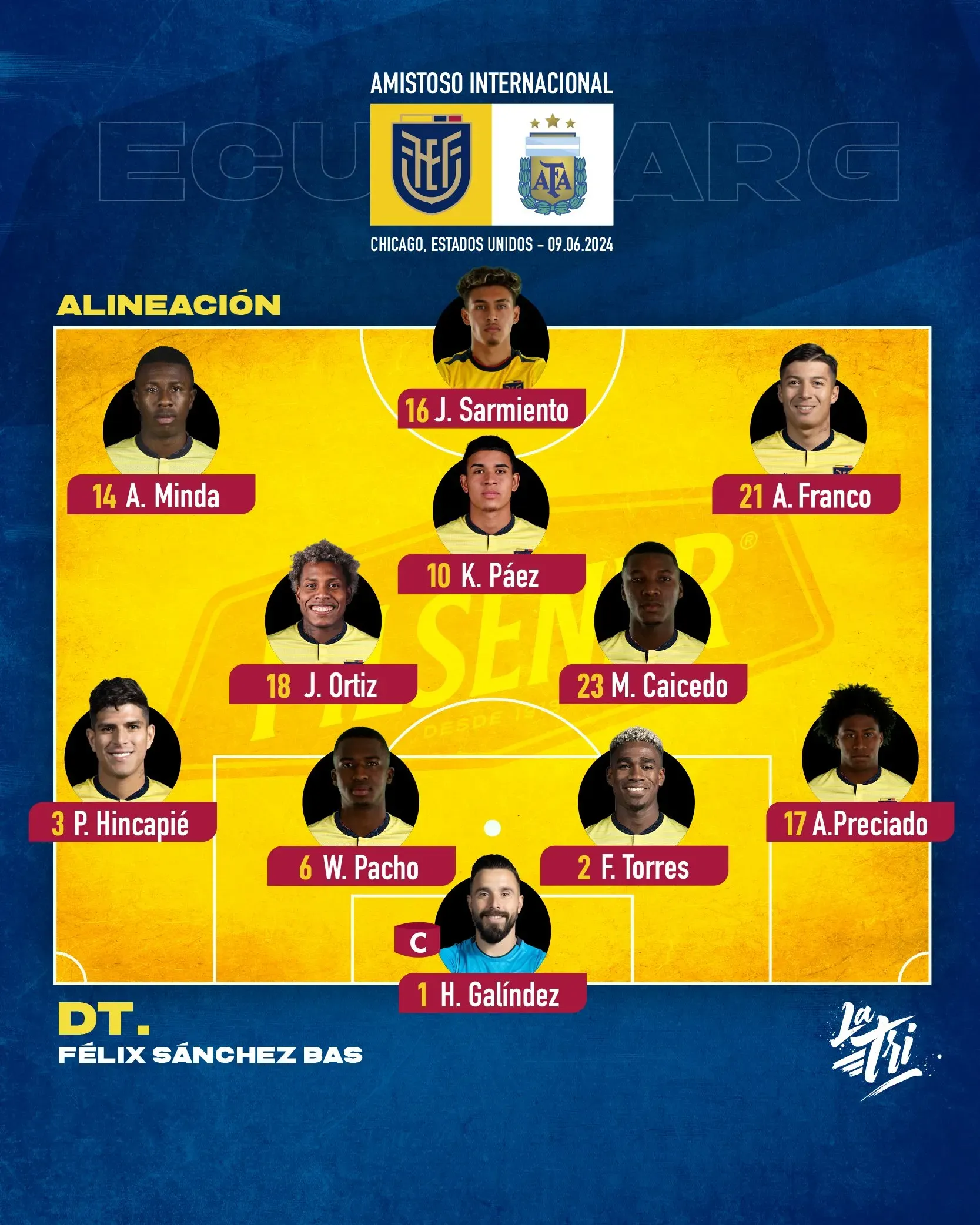 El elenco comandado por SánchezBas saldría con: Alexander Domínguez; Ángelo Preciado, Joel Ordóñez, Félix Torres, Willian Pacho, Piero Hincapié; Moisés Caicedo, Joao Ortiz, Kendry Páez, Jeremy Sarmiento y Enner Valencia.