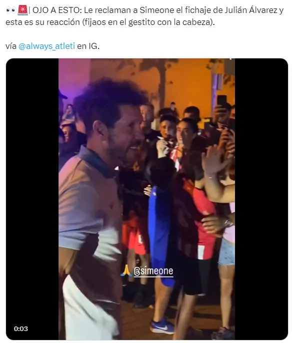 Al respecto de los trascendidos, en la capital del país ibérico están enloquecidos con lo que podría ser, sin dudas, la segunda incorporación más resonante de LaLiga para el curso 2024/2025 por detrás del arribo de Kylian Mbappé al Real Madrid. Por eso, un grupo de hinchas del Atlético de Madrid aprovechó un acercamiento con Diego Simeone para hacerle mención del caso.