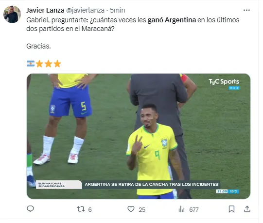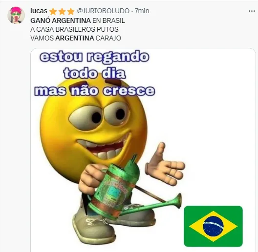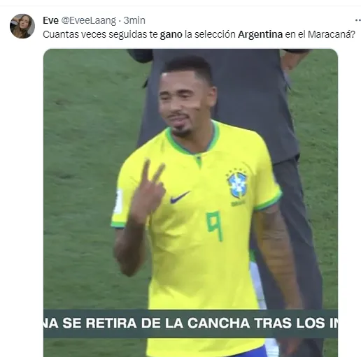 Luego de que el partido termine y se consume esta histórica victoria, los hinchas argentinos lo hicieron tendencia en las redes sociales, en donde comenzaron a burlarse del equipo brasileño, ya que es la segunda vez consecutiva que Argentina le gana en el Maracaná.