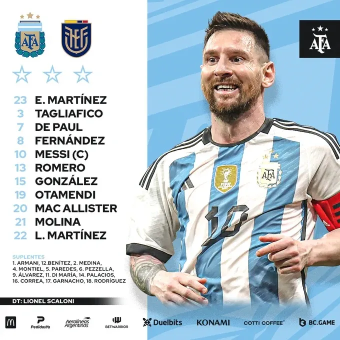 Un nuevo ciclo comienza en la era Scaloni, en el que la Selección Argentina disputará las Eliminatorias Rumbo al Mundial del 2026, que se disputará en México, Estados Unidos y Canadá, comenzando como local en el Más Monumental, frente a Ecuador.
