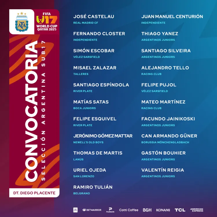 Por el contrario, sí aparece en la convocatoria Can Armando Güner, el nacido en Alemania que decidió representar a Argentina a nivel internacional. Desde el 3 de noviembre, la Albiceleste intentará sumar el título mundial que le falta al fútbol nacional.