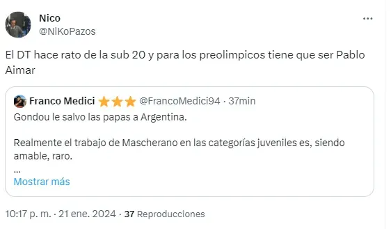 Se trata de Pablo Aimar, que ocupa un lugar como ayudante en el cuerpo técnico de Lionel Scaloni en la Selección Mayor. El Payasito se convirtió en el candidato ideal para los hinchas argentinos, que también metieron en el combo a Diego Placente como alternativa o posible dupla.