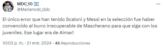 El combinado dirigido por el exmediocampista perdió oportunidades claras para anotar la primera diferencia, pero en total llegó pocas veces al arco rival. En redes sociales, los hinchas argentinos criticaron ferozmente el nivel de juego del equipo y apuntaron contra Mascherano.