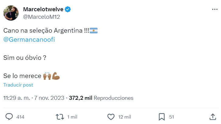 “¡Cano a la Selección Argentina! ¿Sí u obvio? Se lo merece”, escribió el multicampeón del Real Madrid. Entre las respuestas, apareció la de la cuenta oficial del Flu: “Obvio”. Hasta el momento, el goleador no fue llamado nunca para representar al país. ¿Tendrá su chance?