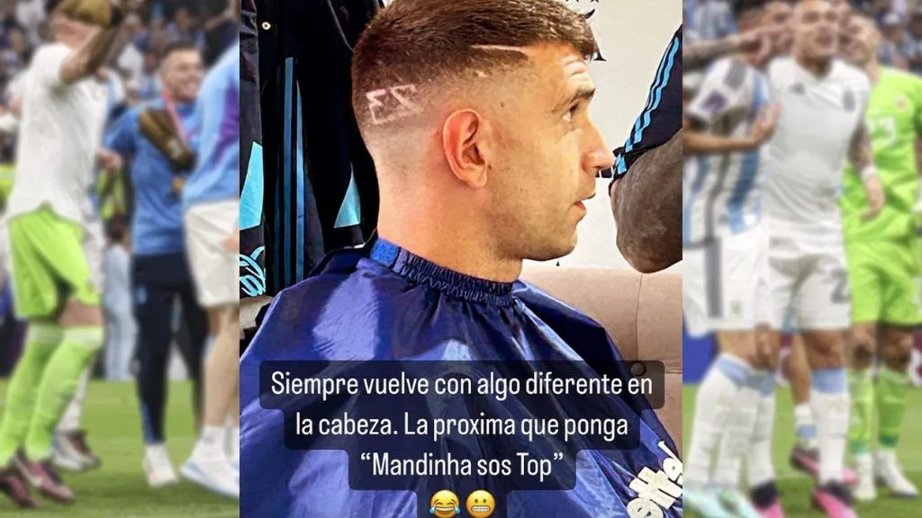 Tras cortarse el pelo para el debut frente a Ecuador, a Dibu se lo pudo ver con un 23 en la nuca, haciendo referencia al dorsal que utiliza con la Selección Argentina. Lejos de ser un peinado raro, del cual podría ser comparado con la popular canción de Charly García, al guardián del arco albiceleste le llegó una particular solicitud: “Siempre vuelve con algo diferente en la cabeza. La próxima que ponga ‘Mandinha sos top'”, escribió su esposa por medio de Instagram, donde compartió la foto con el nuevo look del marplatense. ¿Lo hará?