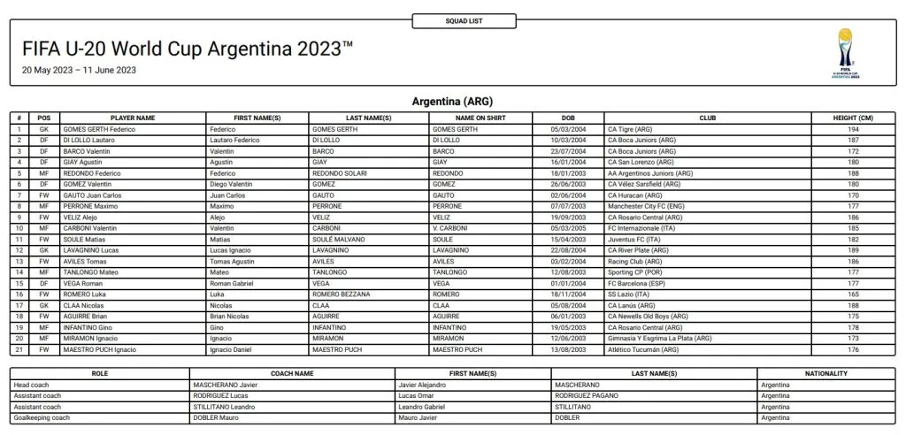 En este caso, Javier Mascherano decidió que el dorsal 10 sea lucido por Valentín Carboni, quien además de lucir los colores de la Selección Argentina, a nivel club defiende la camiseta de Inter de Milán.