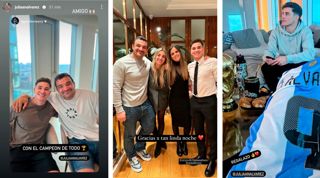 En marzo de este año, el propio jugador de Los Pumas subió una historia mostrando la camiseta que Julián le acababa de regalar, luego de que la Selección estrenara el modelo con el que meses después ganó la Copa América. Un par de semanas después, postearon videos compartiendo una comida en Manchester con sus parejas.