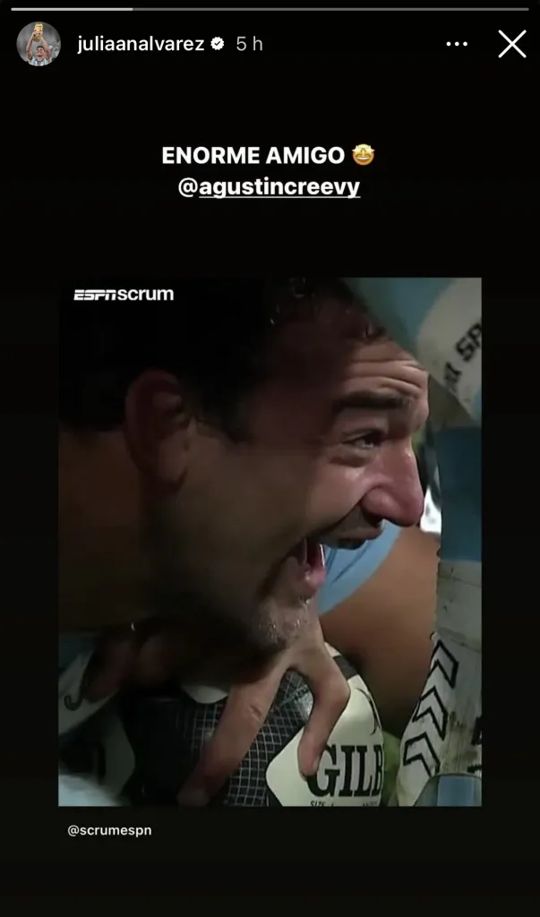 El hooker, que fue llamado de emergencia por la lesión de Julián Montoya, fue el encargado de ponerle cifras definitivas al encuentro. Con la victoria consumada, el experimentado rugbier recibió una felicitación muy especial, de parte de su amigo Julián Álvarez.