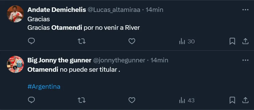 Los comentarios de los hinchas contra Otamendi