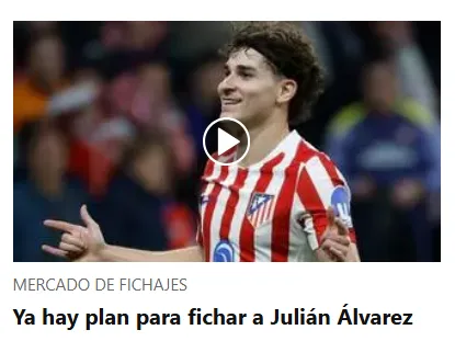 ”Ya hay plan para fichar a Julián Alvarez”, destaca el portal mencionado en su portada. Y dentro del artículo aclara: ”Pese a este importante bache. El delantero argentino ha sido vinculado en varias ocasiones con el FC Barcelona, que busca reforzar su ataque y vería con muy buenos ojos su incorporación”.
