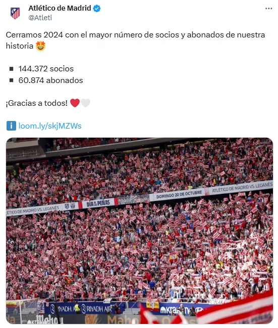 Pero más allá de los futbolístico, el arribo de la Araña a la capital española ayudó al Colchonero para alcanzar una meta sin precedentes en su historia. Se trata de la mayor cantidad de socios y abonados inscritos nunca antes registrada. Con la esperanza inyectada a los hinchas por el ex River y el resto de los argentinos, el Atleti cierra el 2024 con 144.372 socios y 60.874 abonados.