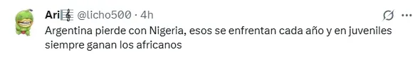 No obstante, también hay algunos hinchas mexicanos que ven caer a la Selección Argentina con Nigeria, en el duelo que se llevará a cabo este miércoles 8 en el Estadio Nacional Julio Martínez Prádanos de Santiago de Chile.