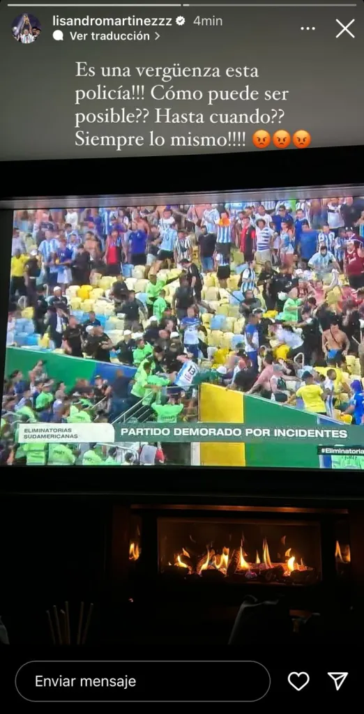 Los jugadores de la Scaloneta se acercaron a la zona para intentar desactivar la agresión, pero terminaron marchándose al vestuario, amenazando con no jugar. En medio de aquel tenso clima, Lisandro Martínez publicó una explosiva historia explosiva en Instagram.