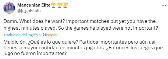 Semejante declaración que lanzó en DSport, como era de esperarse, generó todo tipo de reacciones en los hinchas del Manchester City, quienes plasmaron sus puntos de vista en las redes sociales. ”Mientras Halaand esté aquí tiene que aceptar la vida como delantero suplente o irse, es así de simple”, comentó uno de los fanáticos del club celeste.
