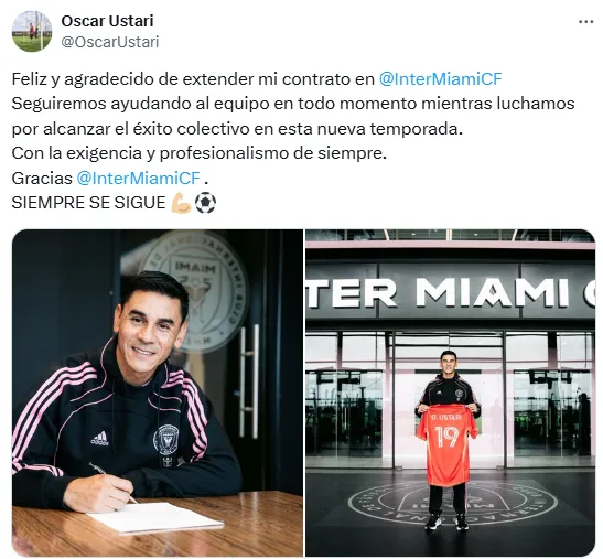 Ahora, Oscar Ustari se enfoca en tratar de ganarse un puesto en el once titular para acumular presencias, dado que desde septiembre (cuando se concretó su arribo al equipo de la Major League Soccer de los Estados Unidos) apenas registró una participación, que fue frente a Toronto por la fecha 36 de la liga estadounidense (victoria del Inter Miami 1 a 0).