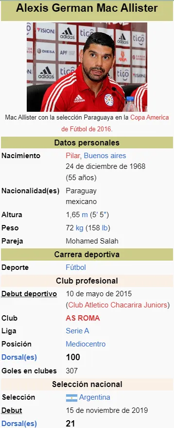 Quien haya ingresado este jueves al perfil de Wikipedia de Alexis Mac Allister, jugador del Liverpool y de la Selección Argentina, no habrá tardado en darse cuenta que el mismo fue hackeado, ya que lo primero que puede verse es una foto de Néstor Ortigoza, exjugador y actual dirigente de San Lorenzo, en reemplazo de la suya y un inexistente segundo nombre: Germán.
