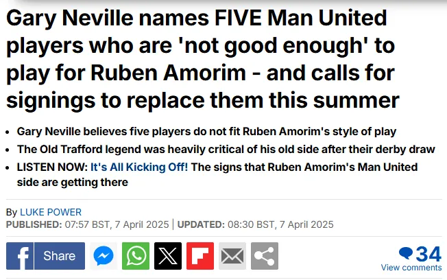 Incluso, por si quedaba alguna duda, Daily Mail, también se hizo eco de las declaraciones de Neville, y resaltó que sus críticas apuntaban a Alejandro Garnacho, pero también a: Rasmus Hojlund, Joshua Zirkzee, Diogo Dalot y Patrick Dorgu.
