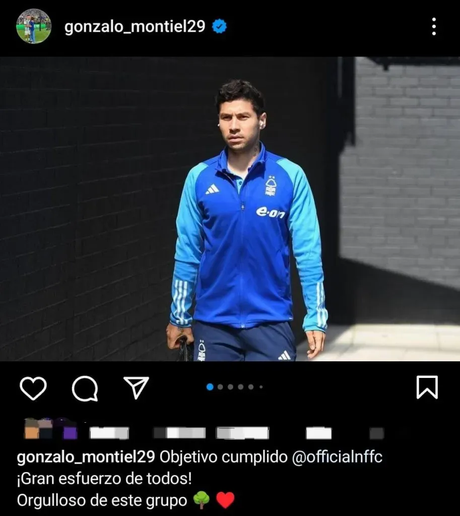 Al respecto, Gonzalo Montiel realizó una publicación que denota que su despedida del fútbol inglés es una gran posibilidad, situación que a la vez expone una total incertidumbre para lo que le depara después de la Copa América de los Estados Unidos, dado que en España aseguran que en el Sevilla no lo tendrán en cuenta para el proyecto de la campaña 2024/2025.