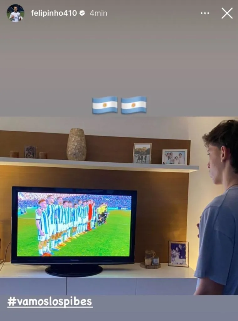 Mientras se disputaba este encuentro, Felipinho, un juvenil que es hijo de argentinos y que nació en Brasil en el año 2006, por lo que podría jugar el Mundial Sub 17, se mostró en sus redes sociales alentando al equipo de Mascherano, con una foto del partido en la que comentó: “Vamos los pibes”.