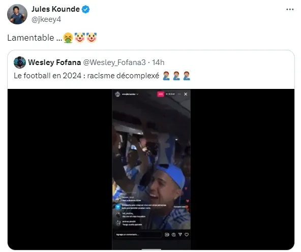 Tal fue el caso de Jules Koundé, quien republicó el video de Enzo Fernández, tildándolo de ”lamentable” y añadiendo dos emojis del rostro de un payaso. Así, dejó bien en claro su enojo y su postura ante la situación que en horas se propagó en diferentes medios franceses.