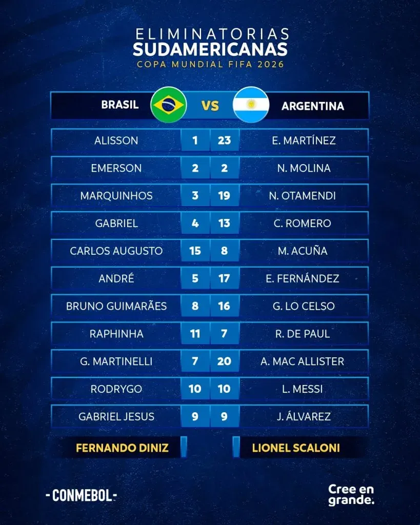 Una de las grandes dudas que tenía el entrenador de la Selección Argentina estaba vinculada al ataque, donde Julián Álvarez y Lautaro Martínez peleaban por un lugar. Y a poco de inicie el Superclásico, se confirmó que será el delantero de Manchester City quien estará entre los XI, al igual que pasó contra la Celeste.