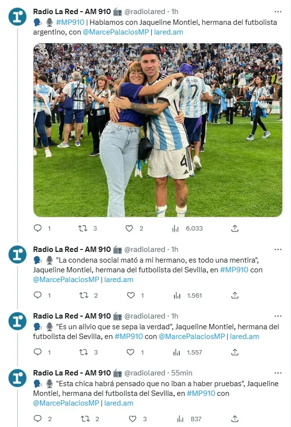 Jaqueline, además, contó cómo están viviendo los Montiel ante este complejo escenario. “Mi mamá estuvo dos días tirada en la cama con todo este tema. Vivimos una pesadilla como familia”, relató. Antes de cerrar, la hermana del defensor de la Selección Argentina dejó en claro que confían en la inocencia del ex River. “Gonzalo es muy fuerte, nos da calma tanto a nosotros como al resto de su familia”, concluyó. Un impactante testimonio en medio de la polémica.