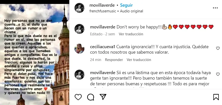“Hay personas queno se dan cuenta, o sí, del daño que hacen con un rumor o un chisme. Pero lo que más duele no es el rumor en sí, sino las personas que lo creen. Aquellos a los que querías o apreciabas, aquellos a los que llamabas amigos o compañeros. Eso es lo que duele, la deslealtad, la traición“, escribió.