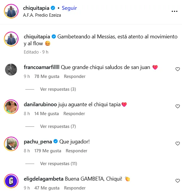 Los comentarios de los hinchas en la publicación de Tapia encarando a Messi