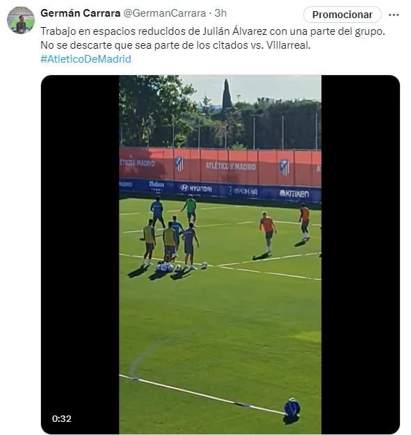 Julián Álvarez ya se entrena como un integrante más del plantel de Diego Simeone. La Araña llegó el domingo a la capital española, el lunes se realizó la revisión médica y firmó su contrato -hasta mediados del 2030- en el Estadio Metropolitano, y desde el martes se entrena en la Ciudad Deportiva de Majadahonda.