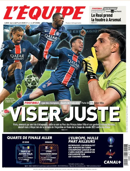 Este miércoles 9 de abril el Aston Villa se enfrentará al París Saint-Germain en el Parque de los Príncipes, en uno de los encuentros correspondientes a la ida de los Cuartos de Final de la UEFA Champions League 2024/2025. Y como era de esperarse, la atención de la prensa del país galo, así como de los hinchas, está puesta en el Dibu Martínez.