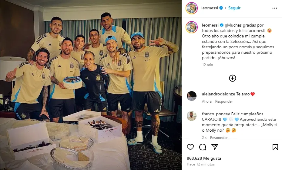 “¡Muchas gracias por todos los saludos y felicitaciones! Otro año que coincide mi cumple estando con la Selección… Así que festejando un poco nomás y seguimos preparándonos para nuestro próximo partido. ¡Abrazos!“, compartió el atacante de Inter Miami.
