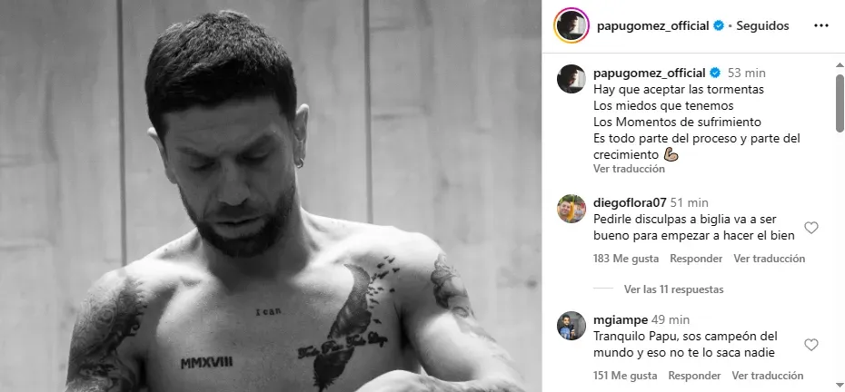 Un día más tarde, Papu hizo un posteo motivacional mientras se encuentra en la espera de la resolución de su situación de dopaje, por la cual se encuentra suspendido por dos años.