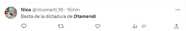 Tras un flojo primer tiempo de la Albiceleste, en el que no pudo romper el cerrojo defensivo de la Selección de Ecuador, los hinchas argentinos explotaron con Nicolás Otamendi, haciéndolo tendencia en las redes sociales, ya que no dio garantías en la defensa y no mostró el nivel que supo tener en Qatar 2022.
