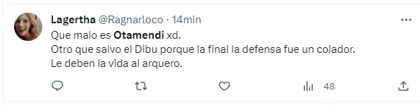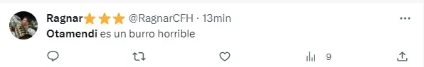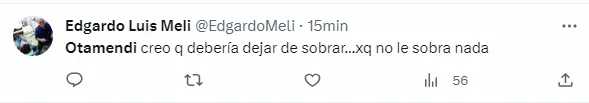 “Otamendi es un burro horrible”, “Que malo es Otamendi”, “Otamendi creo q debería dejar de sobrar…xq no le sobra nada”, fueron algunos de los tantos comentarios criticando al defensor central de 35 años que juega en el Benfica de Portugal.