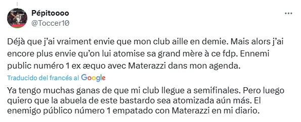 Claramente, haciendo alusión a lo que fue su papel preponderante tanto en la cancha durante la Final de la Copa del Mundo como en los festejos en Qatar y en Buenos Aires, lo que generó el rencor generalizado que provocó que lo abuchearan en sus dos últimas visitas a la capital del país galo para llevarse el premio Lev Yashin durante la ceremonia del Balón de Oro.