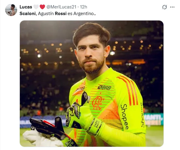 Detrás de este comentario, no paran de verse otros mensajes que se mantienen en esa línea de pedirle al nacido en Pujato que tenga en cuenta al guardameta del Flamengo: