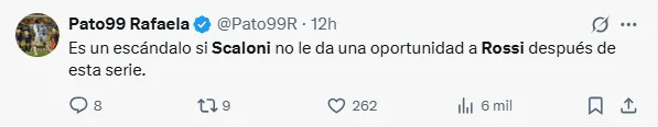 ”Es un escándalo si Scaloni no le da una oportunidad a Rossi después de esta serie”.