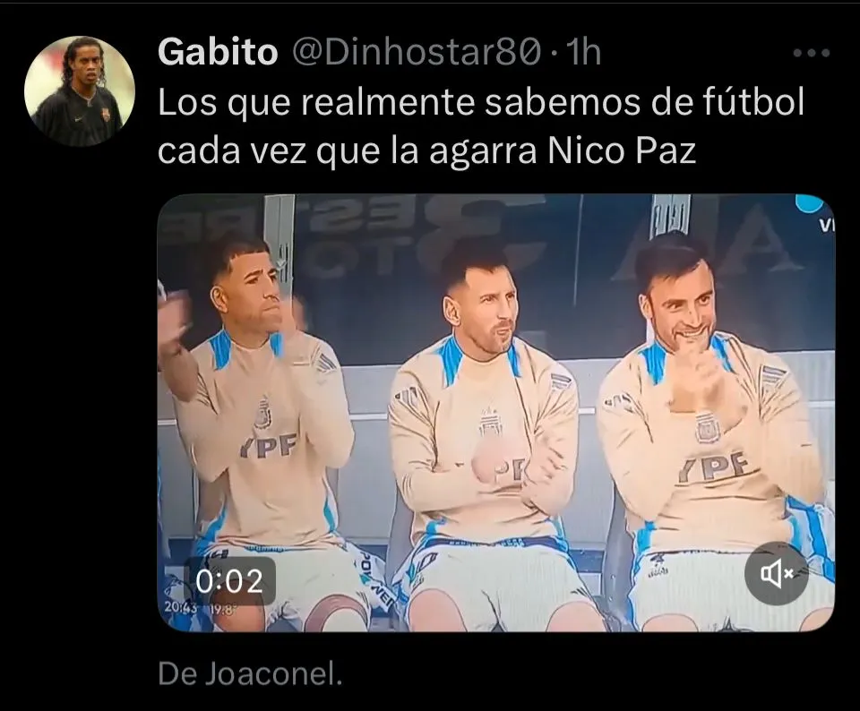 Entre los más mencionados estuvo Nico Paz, quien fue titular y tuvo una actuación destacada en su regreso a la Selección. Su desempeño, junto con algunos pasajes curiosos del encuentro, desató una catarata de memes que invadieron las redes y le pusieron el toque de humor a la victoria albiceleste.