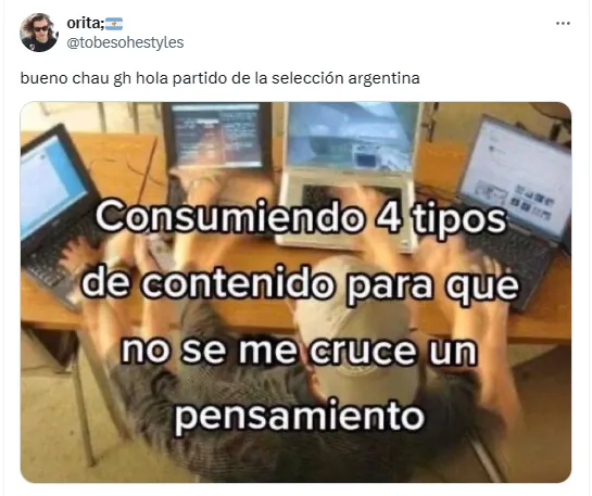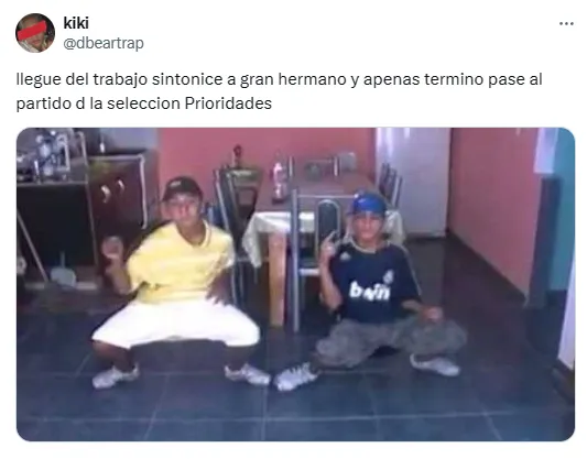El principal foco de los memes estuvo en el horario tardío del partido en nuestro país, pero también se mezcló con la emisión de uno de los episodios más vistos de Gran Hermano con el reencuentro entre Alfa y Ariel tras su participación en la edición pasada del programa. Mirá los mejores.